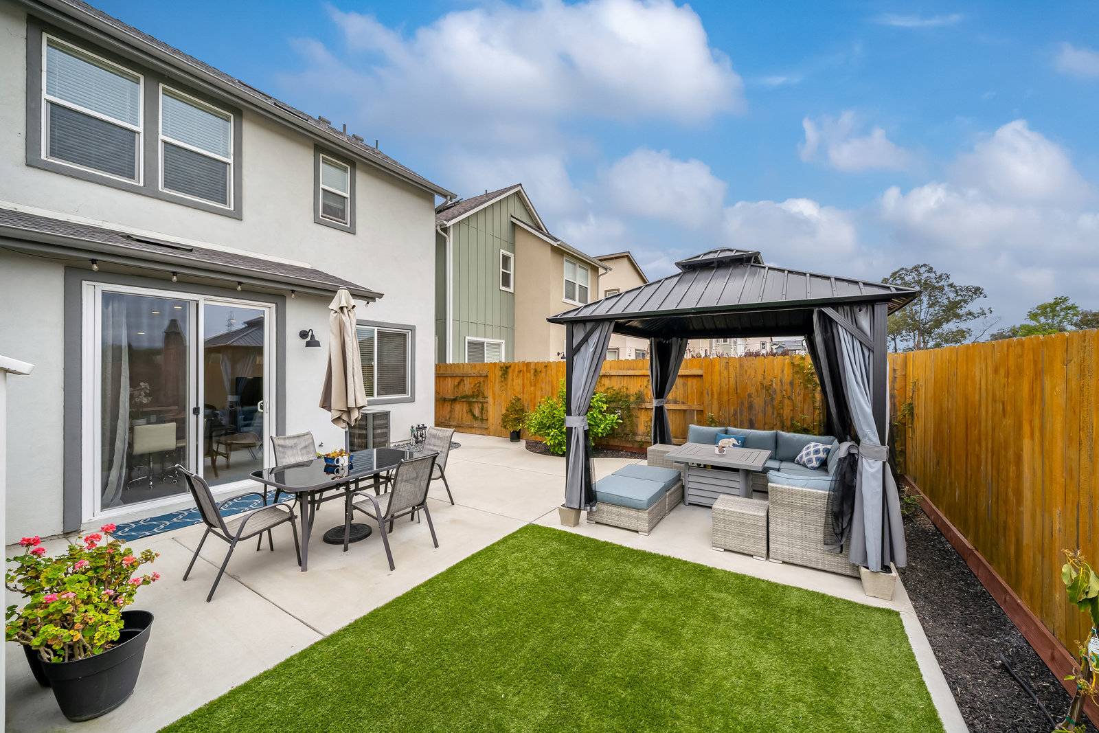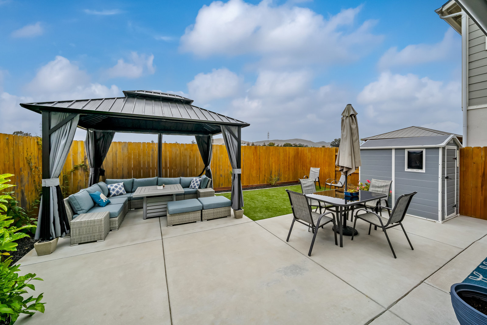 Enjoy this move-in ready residence in the Heirloom Collection at San Luis Ranch! Convenient to downtown SLO, Laguna Lake Regional Park, hiking and biking Cerro San Luis and the Irish Hills as well as shopping and dining at the San Luis Ranch Farm and Marketplace. This stylishly upgraded home is perfectly situated to enjoy all that the Central Coast has to offer. The home features an all-electric design with energy efficient heat pump technology for hot water, heating and air conditioning in addition to owned solar and Powerwall battery storage. This low maintenance property includes four spacious bedrooms, three full bathrooms and a half bath. The first level en-suite with a separate entrance is ideal for guests, home office, multi-generational living or rental income potential. Upstairs the en-suite primary bedroom includes a walk-in closet and a luxe bathroom with dual sink vanity and a tiled shower surround. Two second level bedrooms and full bathroom give you plenty of room for the whole family. The inviting floor plan includes finishes such as luxury vinyl plank flooring throughout the living spaces, smooth trowel finished walls, and a peaceful palette of paint colors. With an abundance of natural light, the living room is a comfortable space to unwind after a day of exploring local beaches. The kitchen features quartz counter tops and backslash, an island with breakfast bar, and a Samsung stainless steel appliance package (refrigerator included). The thoughtfully designed kitchen is the perfect spot for creating great meals with produce from the community gardens, and you’ll love gathering around the table with friends in this open concept home with its easy indoor-outdoor transition. Set amongst the backdrop of territorial hills, the rear yard provides an amazing outdoor living space with a paved patio, synthetic turf, citrus tree, and drought tolerant landscaping. Additional highlights include a single car garage with storage niche, a laundry room with stainless steel sink and large capacity washer and dryer. This is a wonderful opportunity to call one of SLO county’s special spaces home!